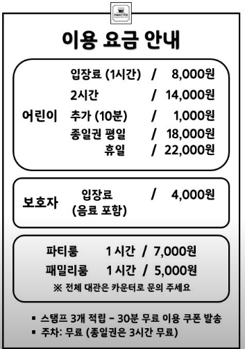 주차는 3시간까지만 무료라서 추가요금 나왔구요. 주차 지원이 최대 3시간이라, 종일권을 끊고 오래 놀 경우 추가 주차 요금이 발생할 수 있다는 점은 참고하세요!