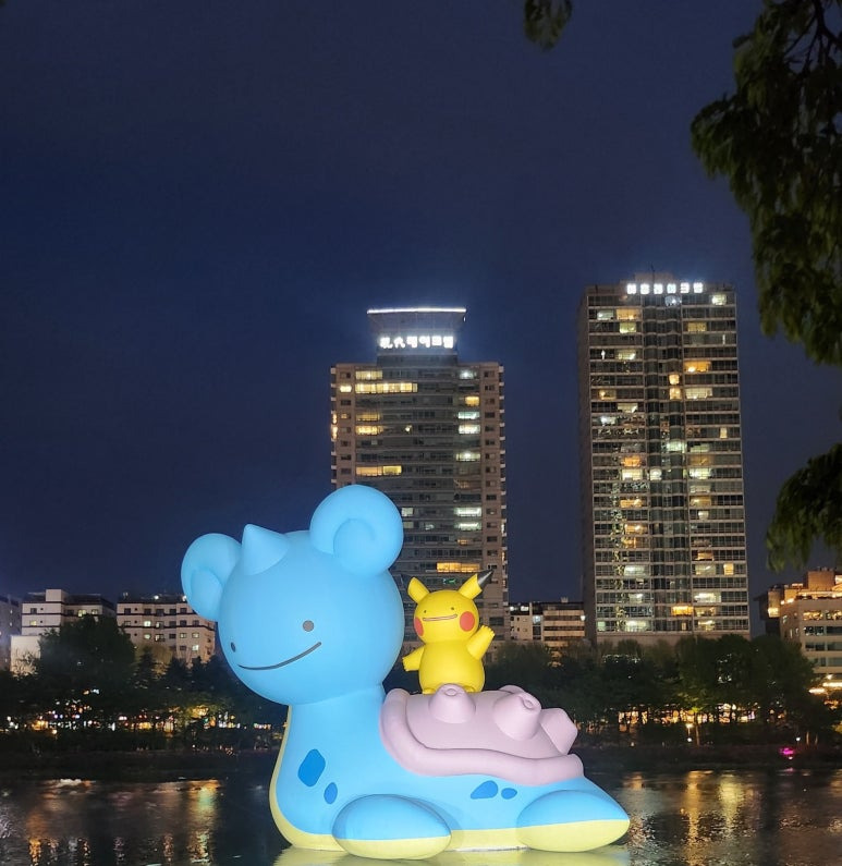 무려 16m 높이의 라프라스와 피카츄 벌룬이 호수 위에 전시되어 있었는데, 실제로 보니 정말 거대하고 귀여워서 감탄이 절로 나왔습니다.