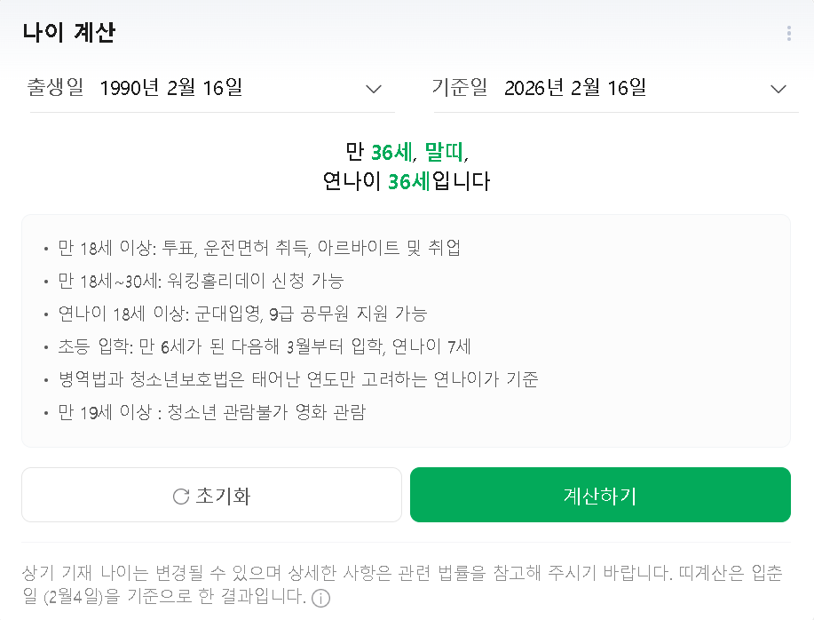 직접 계산이 헷갈린다면 만 나이 계산기를 활용하는 것이 가장 정확합니다.