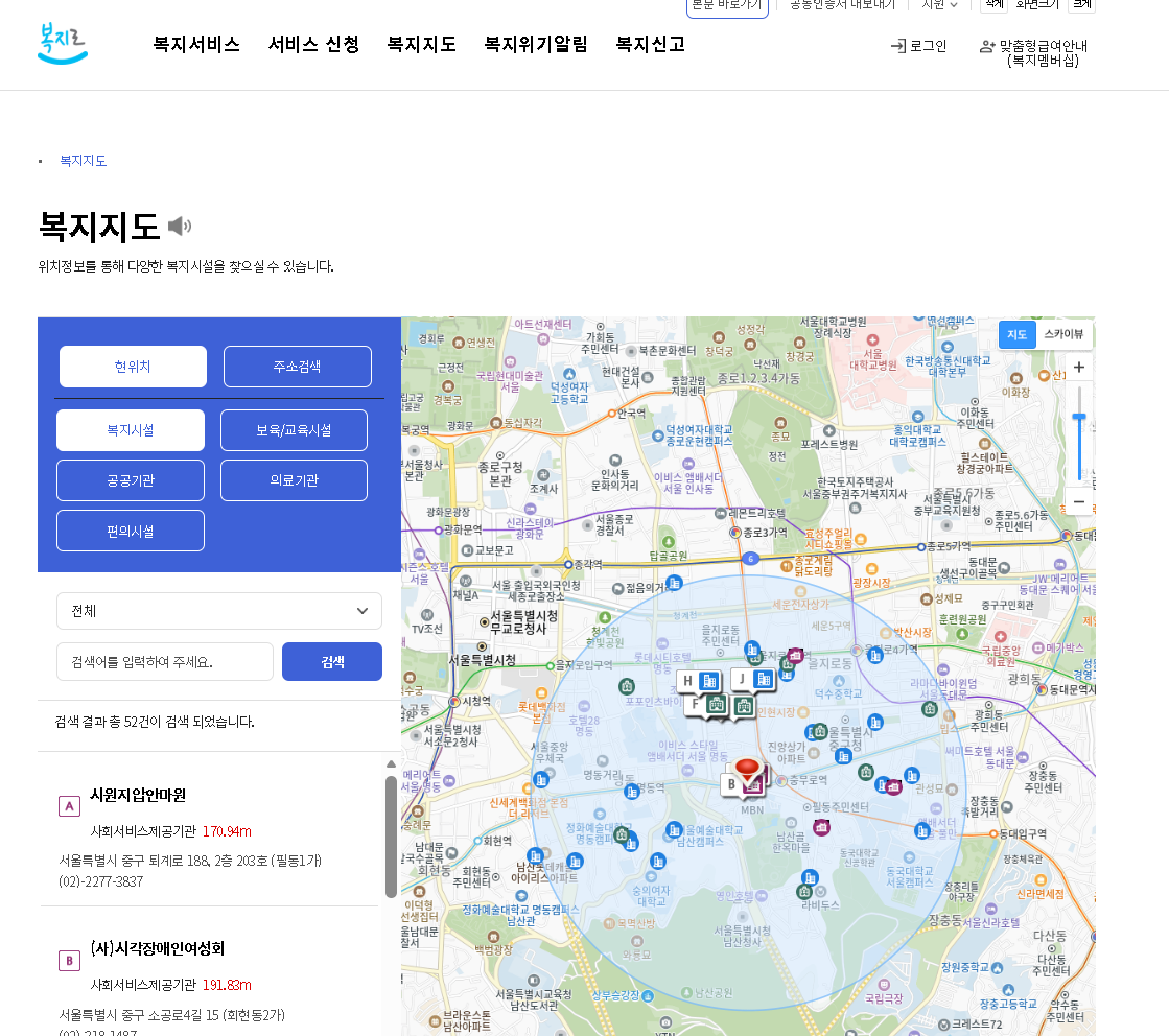 - 복지서비스 검색, 신청 현황 확인, 상담 신청 모두 가능
