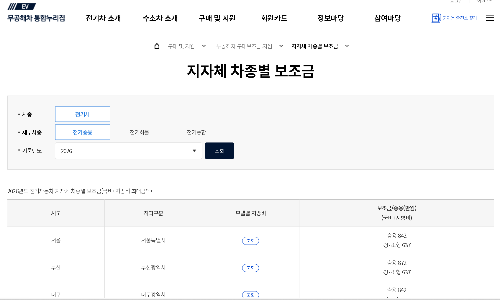 환경부에서 운영하는 무공해차 통합 누리집에서는 전기차·수소차 보조금, 충전소, 정책 정보를 확인할 수 있습니다.