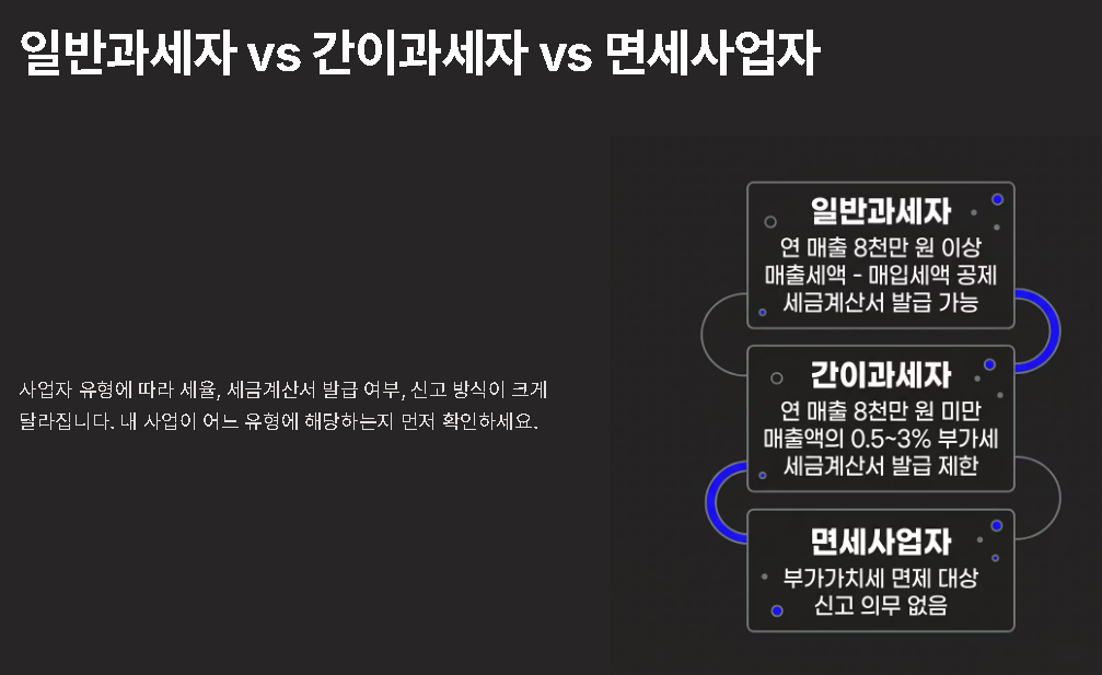 👉 매출 규모가 크거나 사업 확장 단계라면 대부분 일반과세자에 해당합니다.