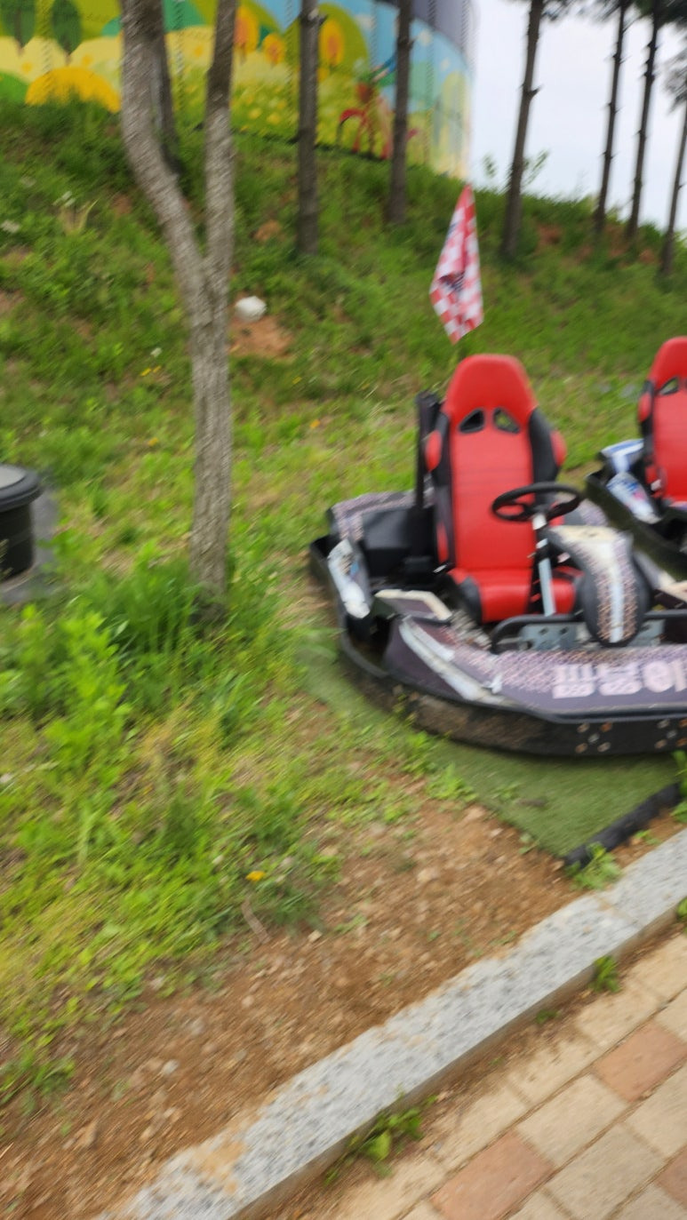 아이들이 직접 카트를 운전해보는 카트 레이싱장에서 짧지만 강렬한 모험이 펼쳐졌습니다.