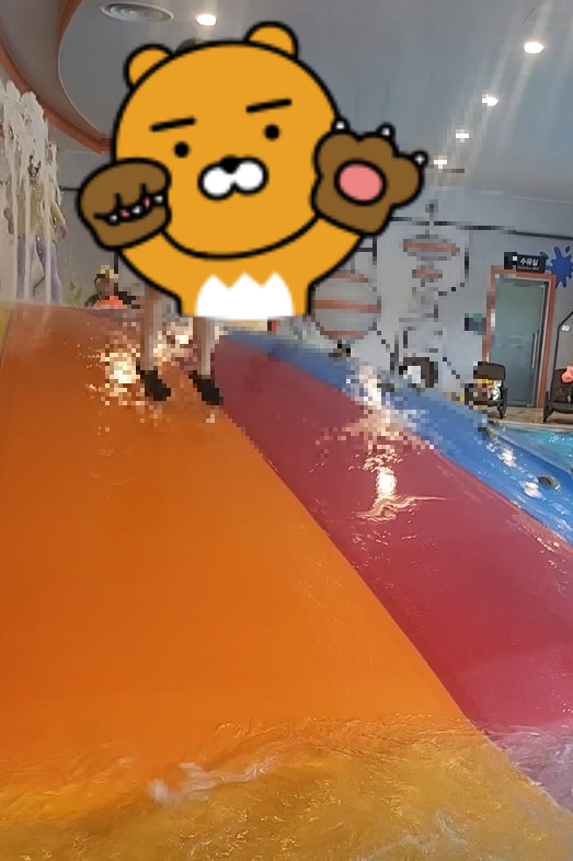 물속에서 뛰어놀 수 있는 놀이기구인데 아이들이 놀기 좋은 워터 슬라이드 같아요 ㅎㅎ
