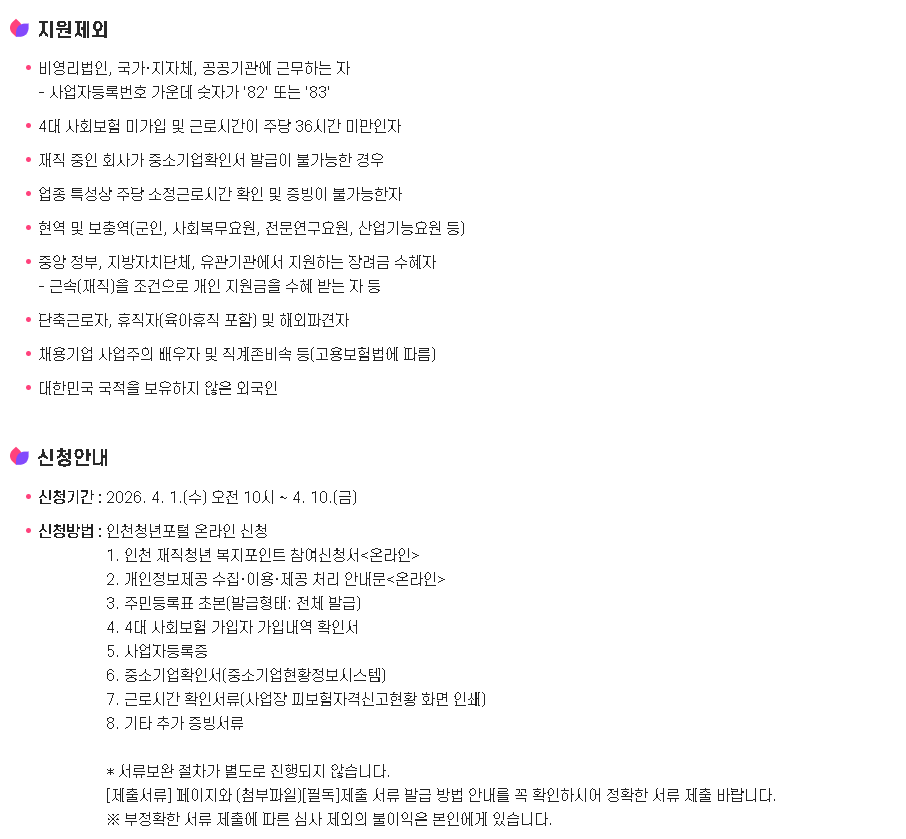 2026 인천 동구 청년 컬처페이 신청하기 대상 자격 지원금 20만원