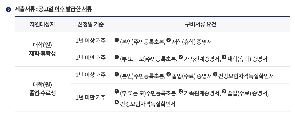 | 재학증명서 또는 졸업증명서 | 신청 자격 확인용 |