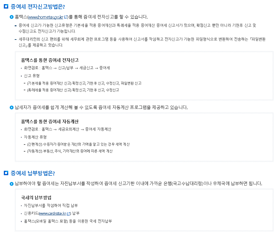 ✔ 가장 많이 이용되는 방법입니다. 홈택스 로그인 → **‘세금신고 ▶ 증여세 신고’**로 진행하면 됩니다.