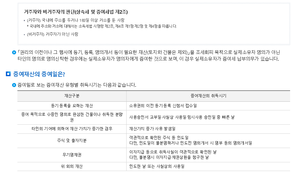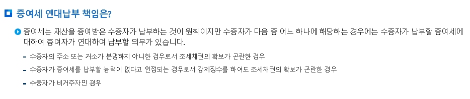 ※ 단, 해외거주자인 수증자가 국내 재산을 증여받은 경우에도 수증자가 납부해야 합니다.