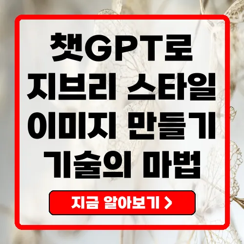 최근 들어 챗GPT와 같은 인공지능(AI) 기술의 발전이 우리의 창작 방식을 크게 변화시키고 있습니다. 특히, 사용자가 원하는 스타일로 이미지를 생성해주는 기능이 많은 주목을 받고 있는데요. 그중에서도 일본 애니메이션 스튜디오 지브리의 독특한 스타일을 손쉽게 재현할 수 있는 방법이 있다는 사실을 알고 계신가요? 지브리 스타일의 이미지는 많은 이들에게 감성과 아름다움을 선사합니다. 그렇다면 이제 여러분도 챗GPT 앱을 통해 자신의 상상력을 생생하게 표현해볼 수 있습니다. 특히, 지브리 스타일의 이미지 생성을 위해 어떤 방법과 팁이 있는지 궁금하다면, 아래의 내용을 주목해 주시기 바랍니다. 챗GPT와 함께라면 막연한 상상이 현실로 이루어질 수 있습니다.