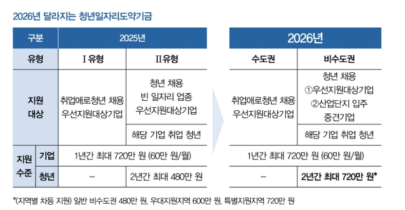 “지방(비수도권)으로 취업하면 지원이 더 커진다”는 말, 이제는 정책으로도 확인됩니다. 2026년부터 청년일자리도약장려금이 비수도권 우대 구조로 개편되면서, 비수도권 기업에서 6개월 이상 근속한 청년은 2년간 최대 720만원의 근속 인센티브를 받을 수 있게 됐습니다.
