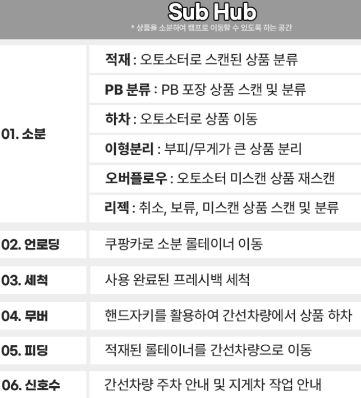 제가 해본 업무는 소분중에서도 스캔, 소뷴류, 적재와 세척, 언로딩이에요.