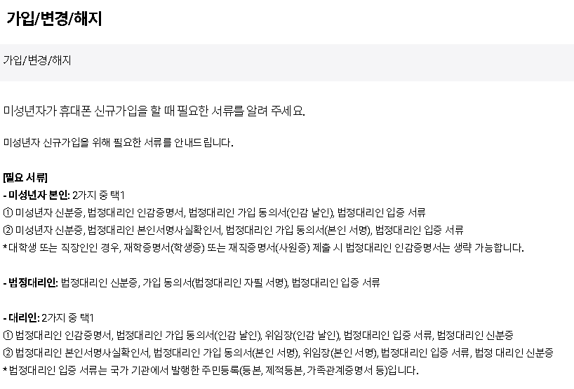 - ✔ 부모 명의 → 보호자 동행 or 서류 필요