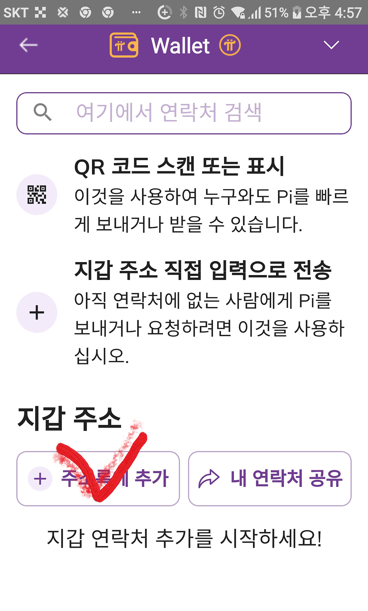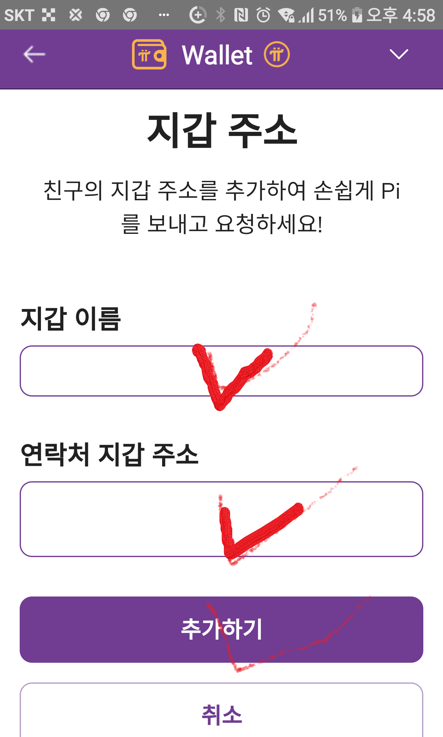 위의 지갑 주소에 모두 입력하면 추가를 클릭한 후