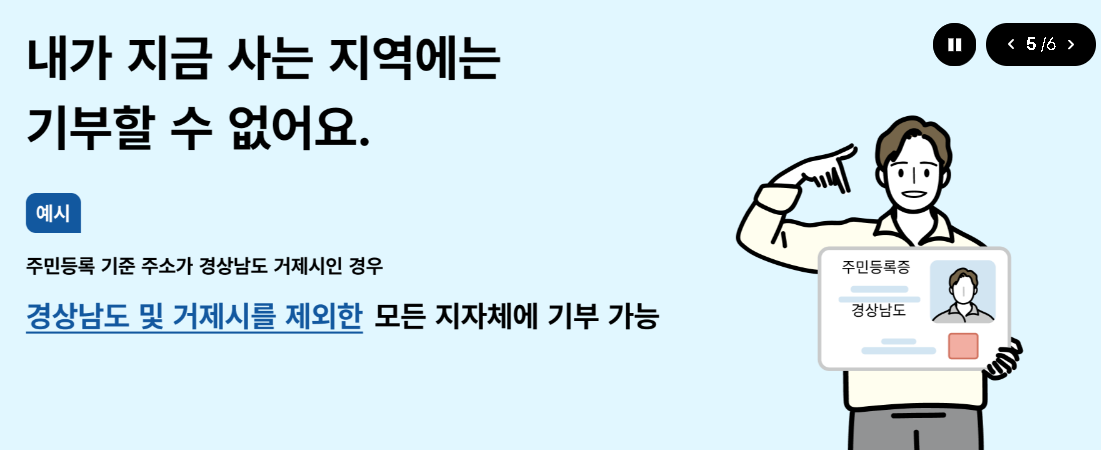 - 예: 인천 거주 → 인천시·군·구에는 기부 불가