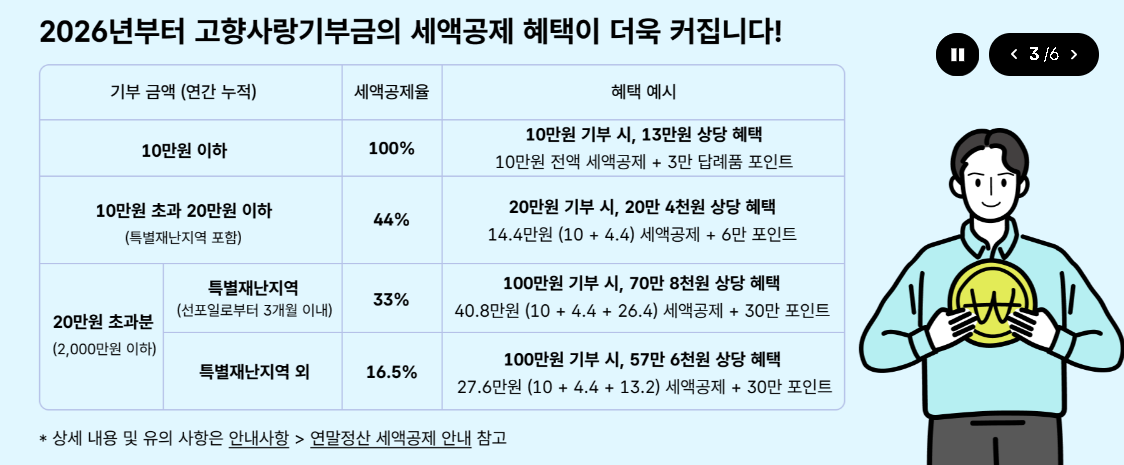 2. 2026년 기준 혜택 요약 (세액공제 + 답례품)