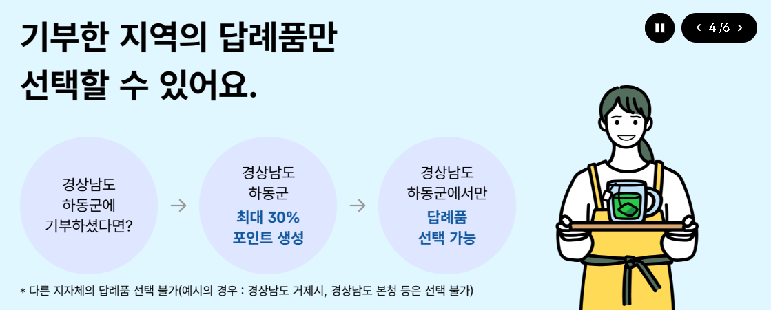 - 20만 원 기부 → 약 6만 원 상당 답례품