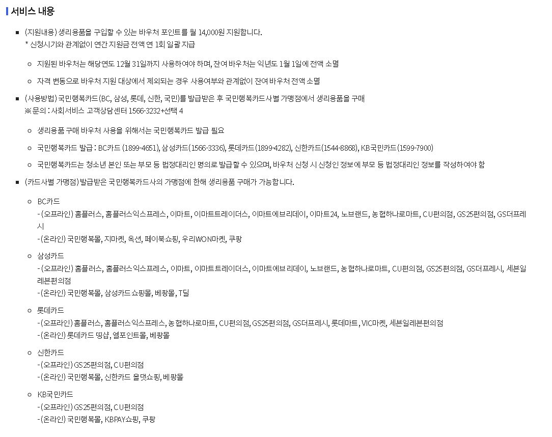 1) 전국 공통: 2026 여성청소년 생리용품 바우처(국가 지원)