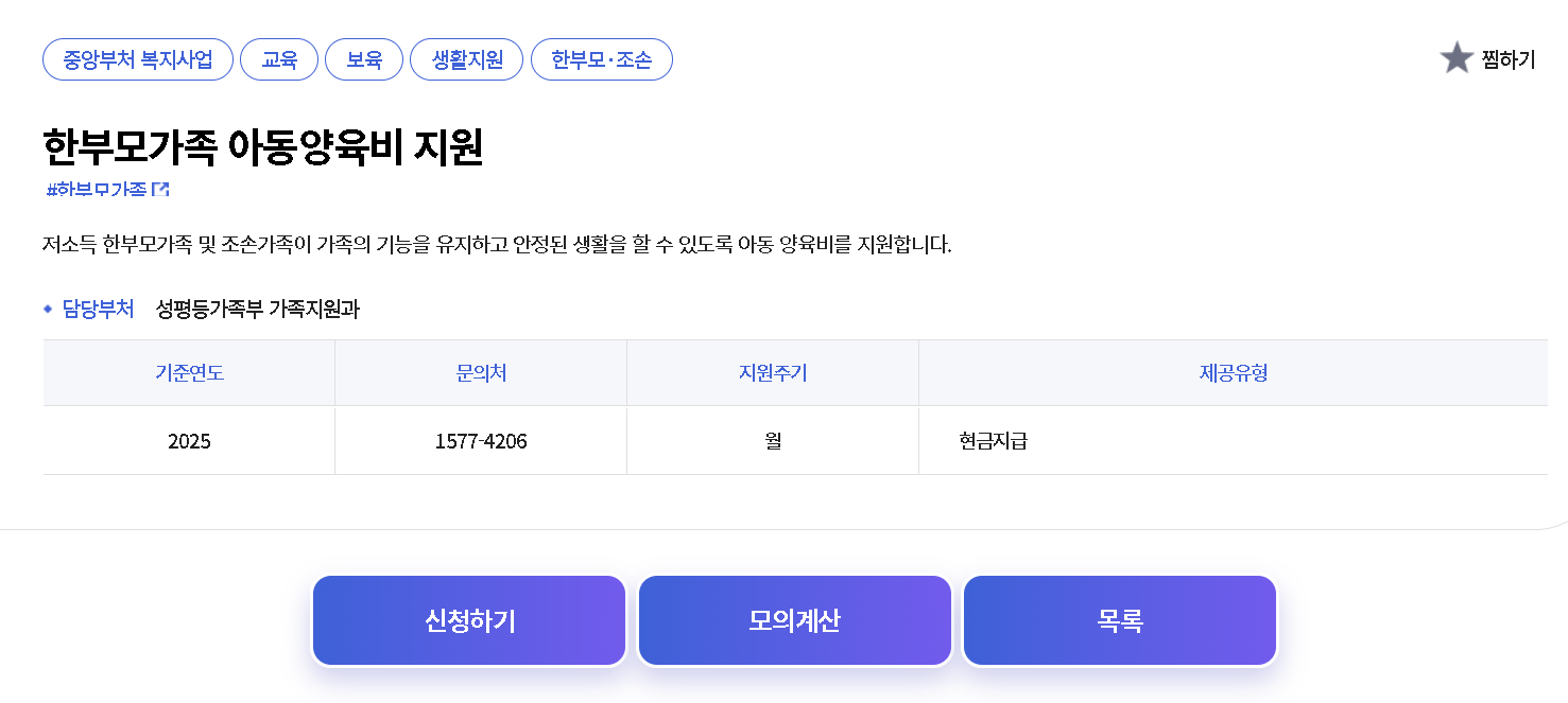 팁: 처음 신청하실 때는 “한부모가족(아동양육비)”만 보지 마시고, 복지로 서비스 목록에서