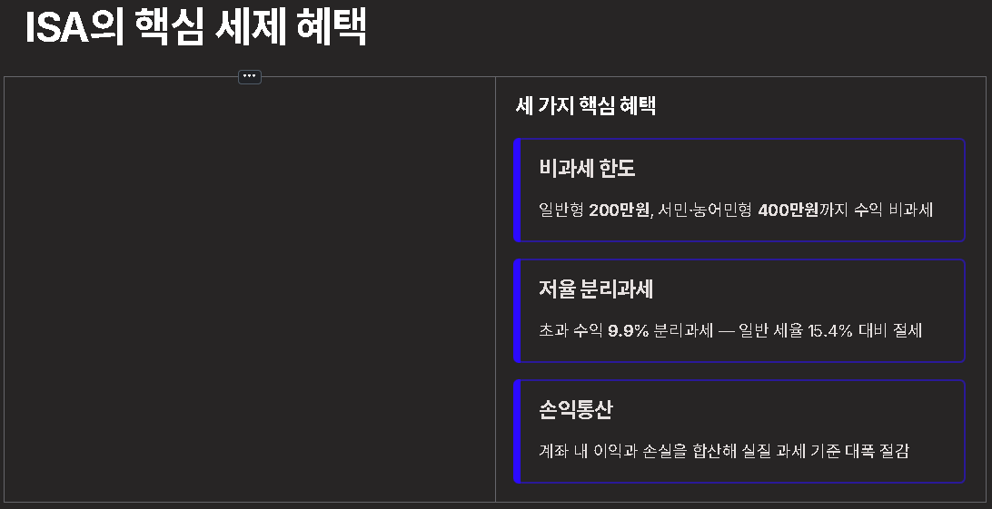 ✔ ISA 초과분: 9.9% 분리과세 → 절세 효과 큼