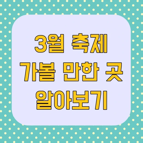 봄바람 살랑살랑~ 꽃향기 솔솔~ 3월이면 마음도 간질간질 여행 가고 싶어지지 않나요? 그래서 준비했습니다! 전국 방방곡곡 펼쳐지는 3월 축제의 향연! 어떤 축제들이 여러분을 기다리고 있는지, 제가 꼼꼼하게 정리해 드릴게요~!