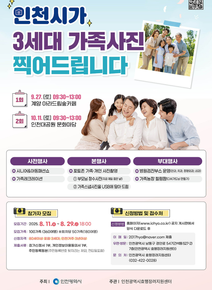바로 인천시효행장려지원센터에서 주최한 '3대 가족사진 촬영 이벤트'에 다녀온 이야기인데요!
